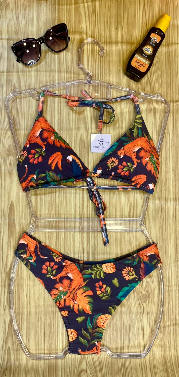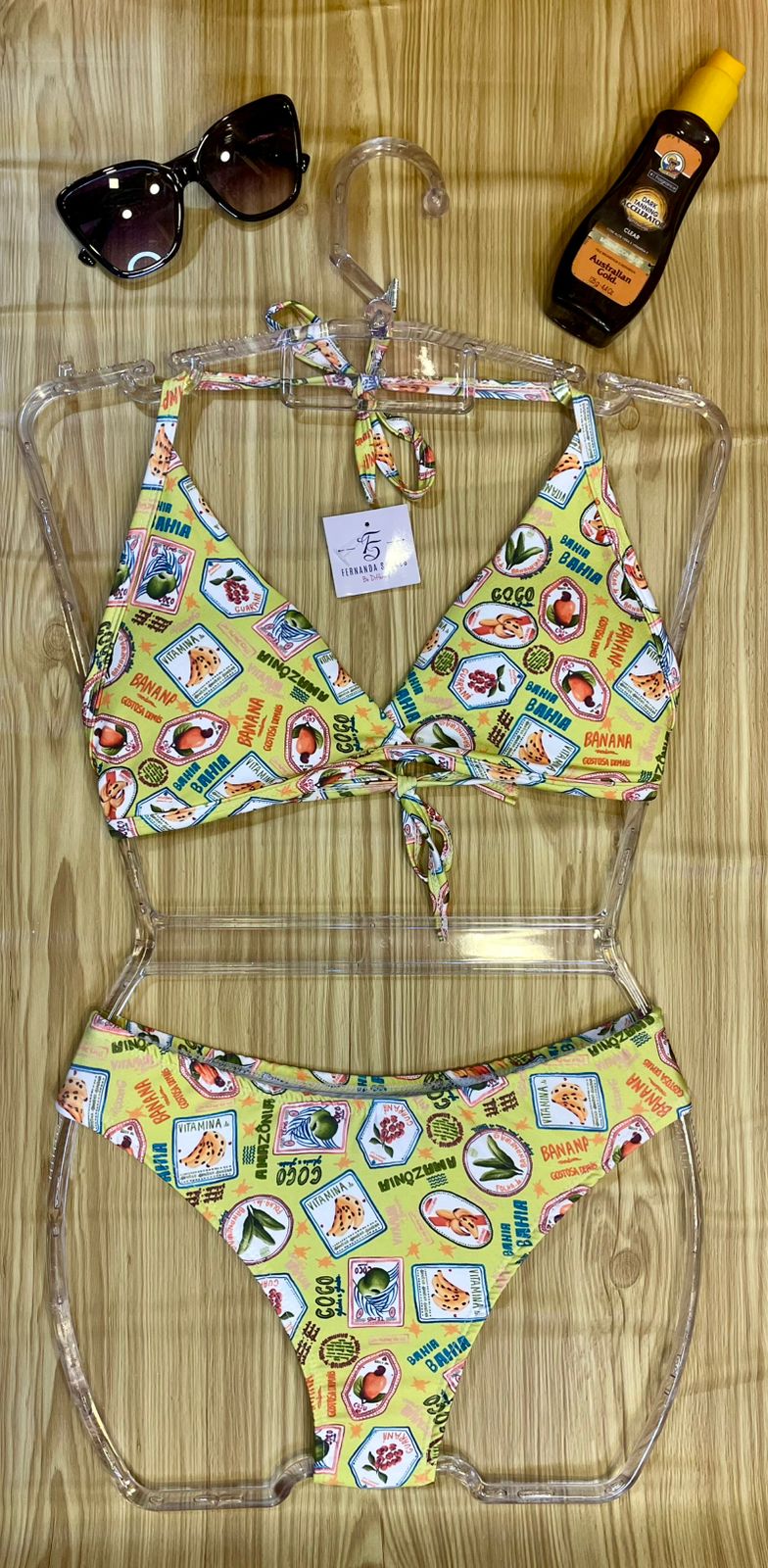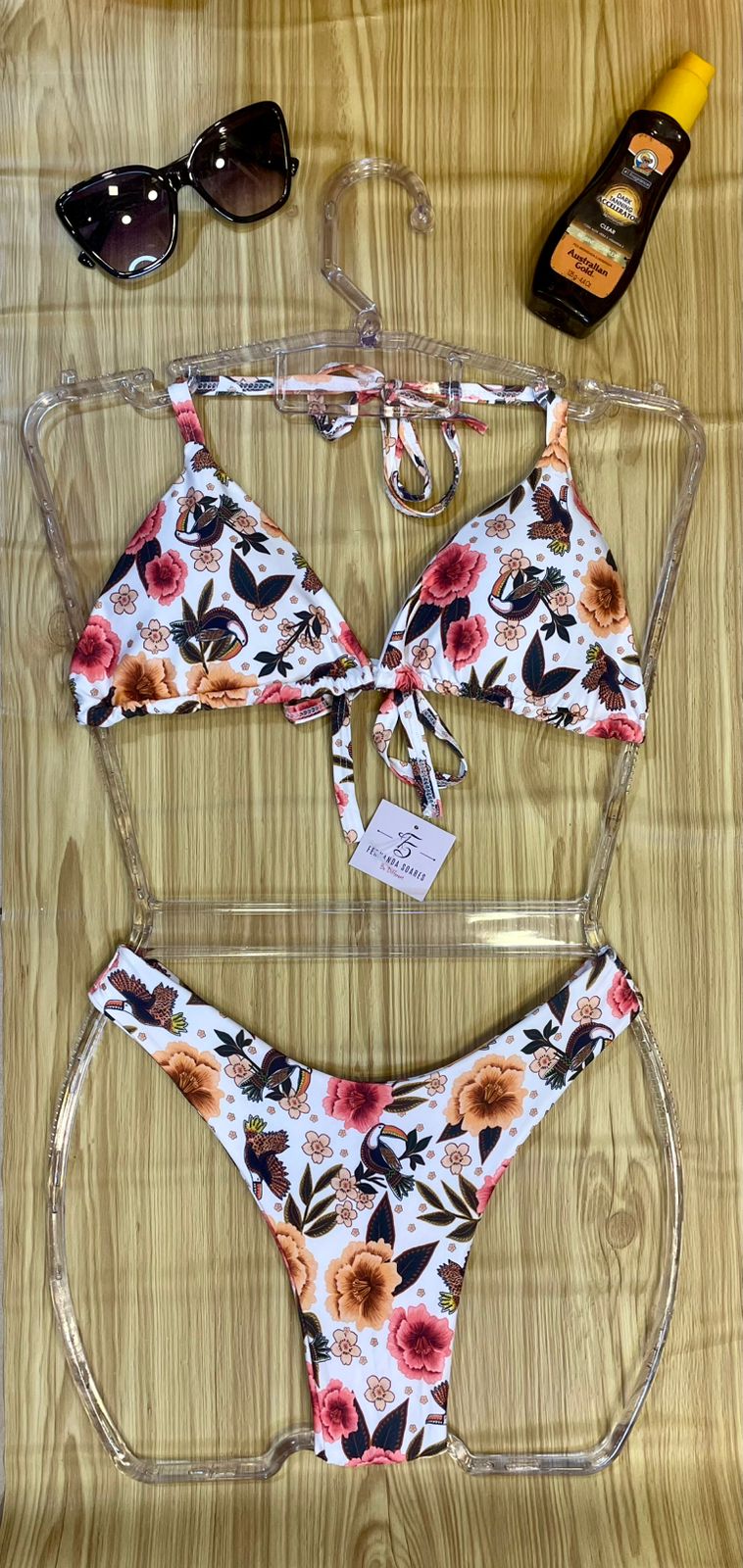 | Cor | Branco Floral, Branco com cores, Verde Tropical, Preto com coral, Onça, Verde Floresta, Nude com folhas, Rosa com poá, Branco com conchas |