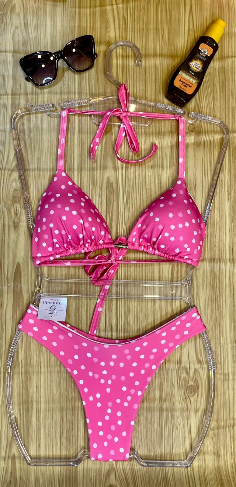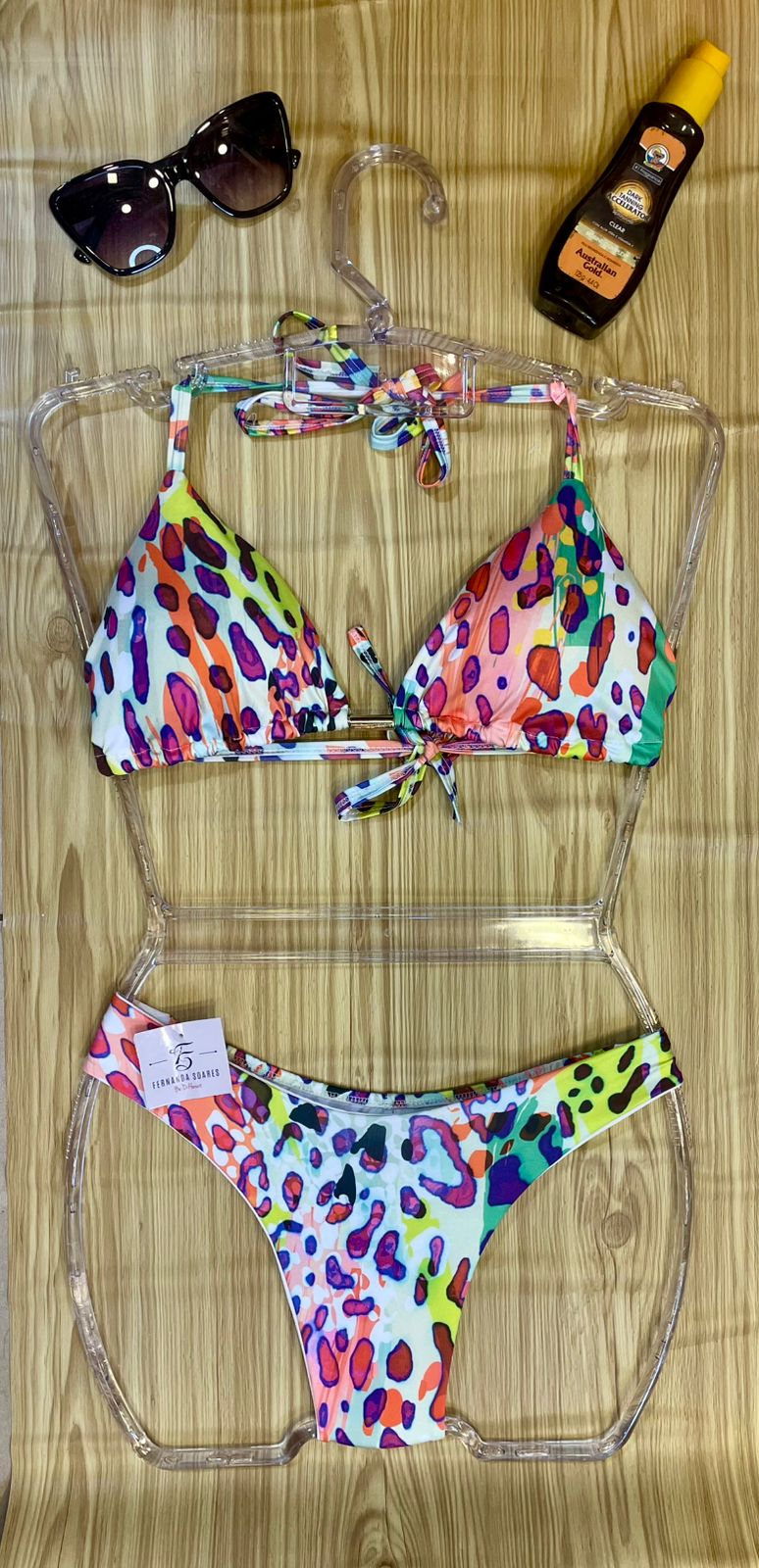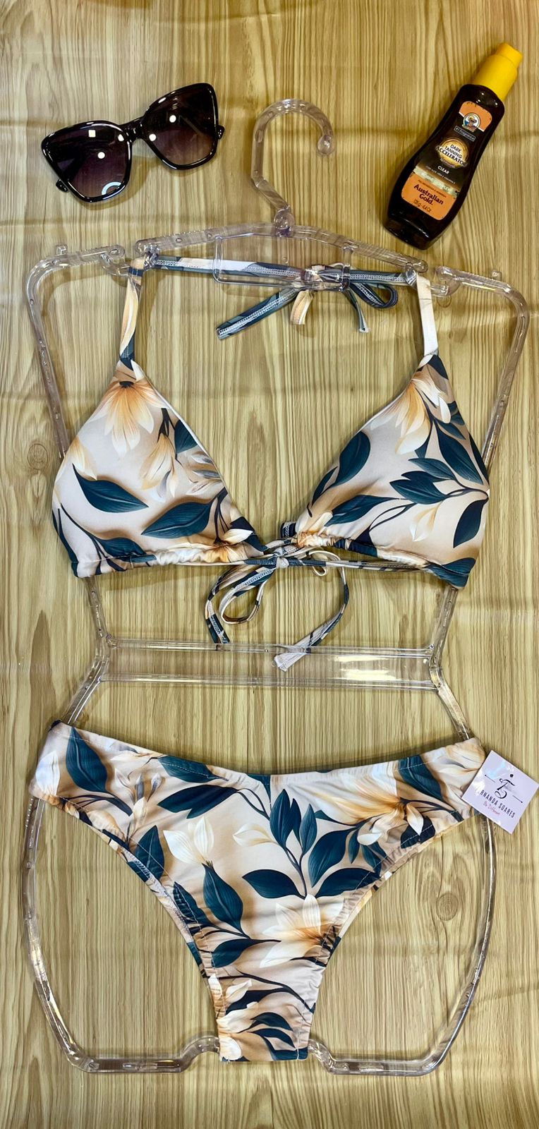 | Cor | Branco Floral, Branco com cores, Verde Tropical, Preto com coral, Onça, Verde Floresta, Nude com folhas, Rosa com poá, Branco com conchas |
