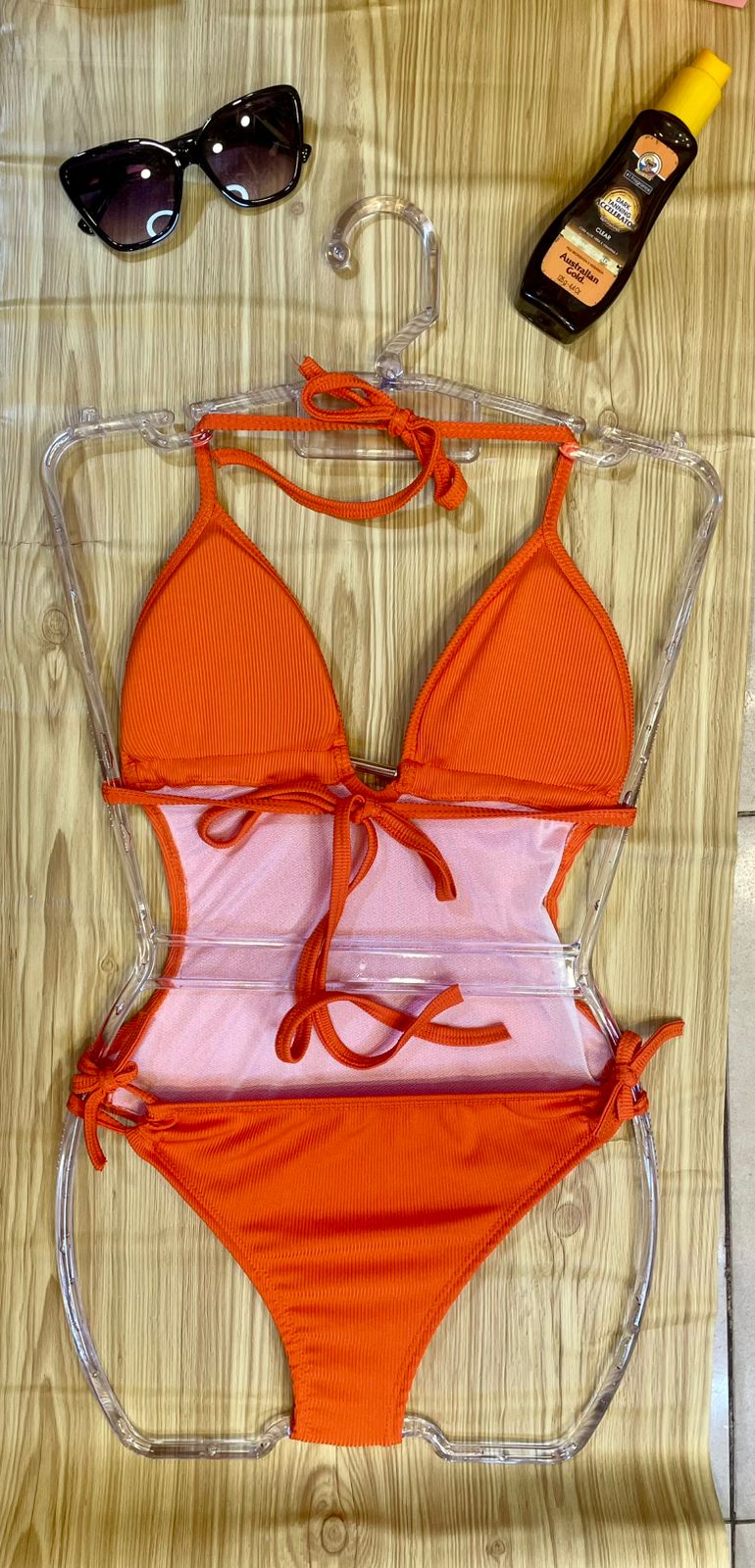 Amarra no pescoço; nas costas e no detalhe lateral.